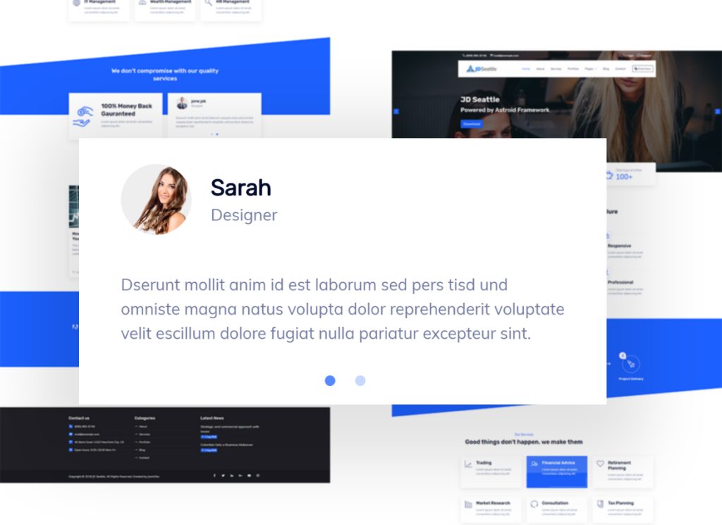 JD Seattle is a FREE multipurpose business Joomla template powered with powerful Astroid Framework and Bootstrap 4 framework. So if you are planning to develop a business, agency, travel or any portfolio website and running on a tight budget, JD Seattle is a perfect Joomla template for your business website.